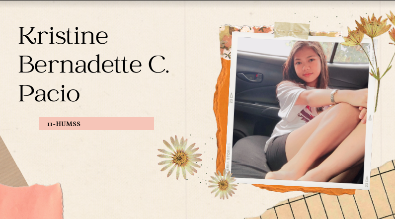 Good Day everyone. My name is Kristine Bernadette C. Pacio, 16 years old from Laoac, Alcala, Pangasinan. A grade 11-HUMSS student at Pangasinan State Univesity Bayambang Campus. I am fond of playing volleyball, basketball and badminton and sometimes I play online games. I also love reading Wattpad books and playing instruments such as ukulele, guitar and drums. I also love drinking coffee.