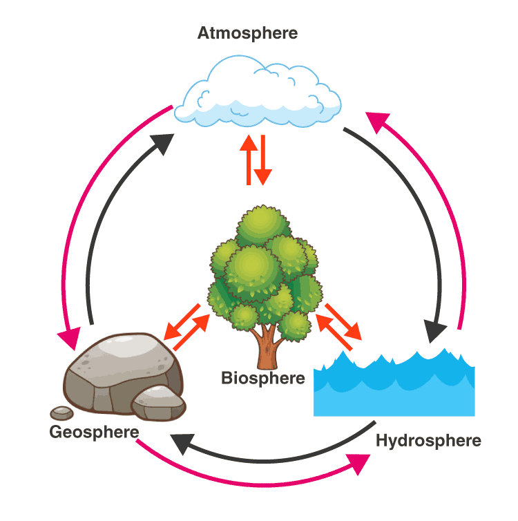 Land, water, living beings, and air are the four basic subsystems that make up the Earth’s system. “Spheres” refers to these four subsystems. The “lithosphere” (land), “hydrosphere” (water), “biosphere” (living things), and “atmosphere” (air) are the four spheres (air).